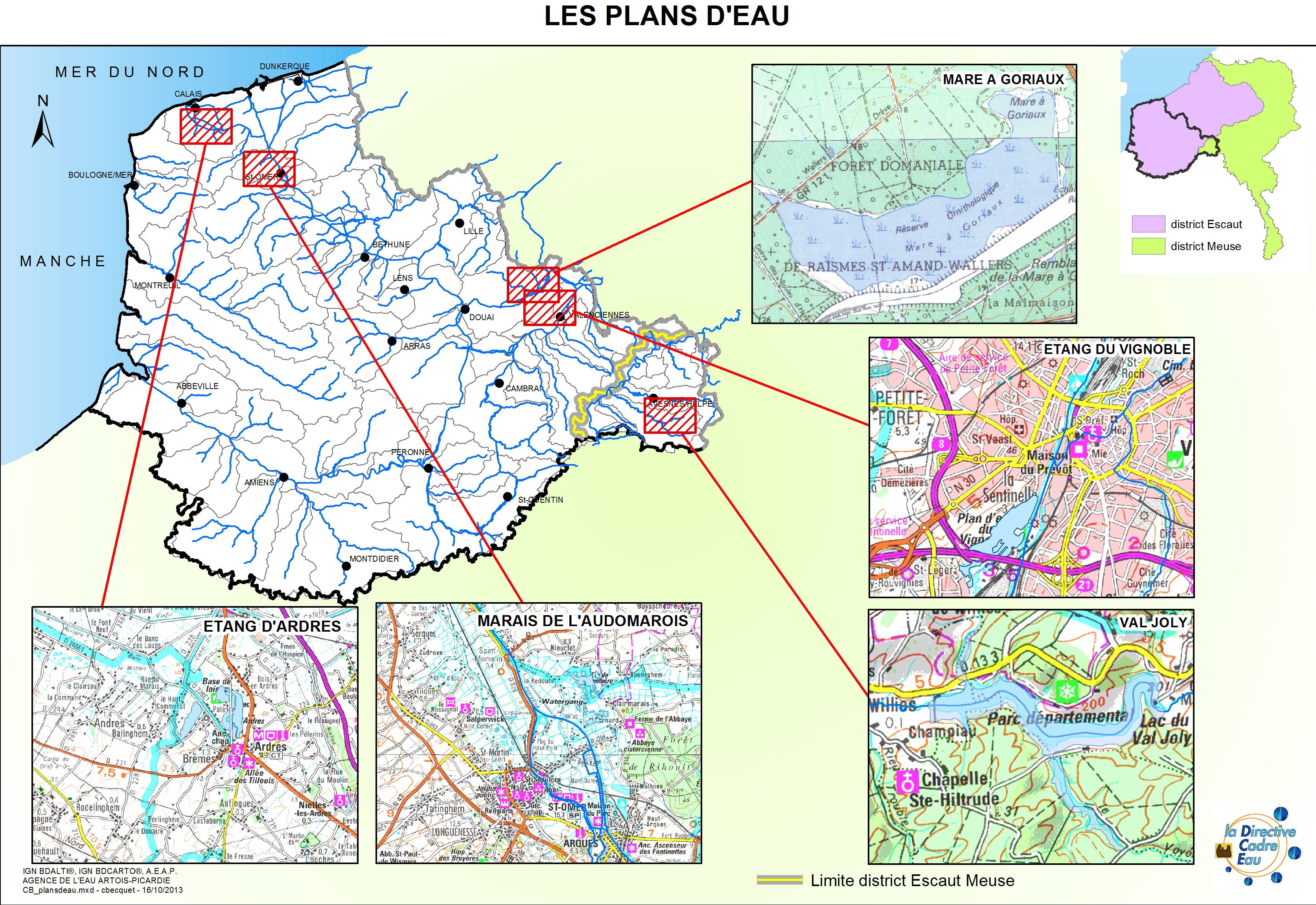 La Directive cadre sur l'eau nous donne des objectifs d'atteinte du bon état des masses d'eau. Cette carte présente les 5 plans suivis au titre de cette Directive sur le bassin Artois-Picardie.