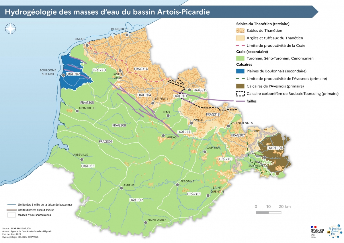 Données géographiques des cartes de l'état des lieux 2025 du bassin Artois-Picardie. Cliquez sur le titre de la carte pour télécharger un fichier .zip contenant l'image de la carte (formats jpg et pdf), le projet QGIS et le géopackage associé.
