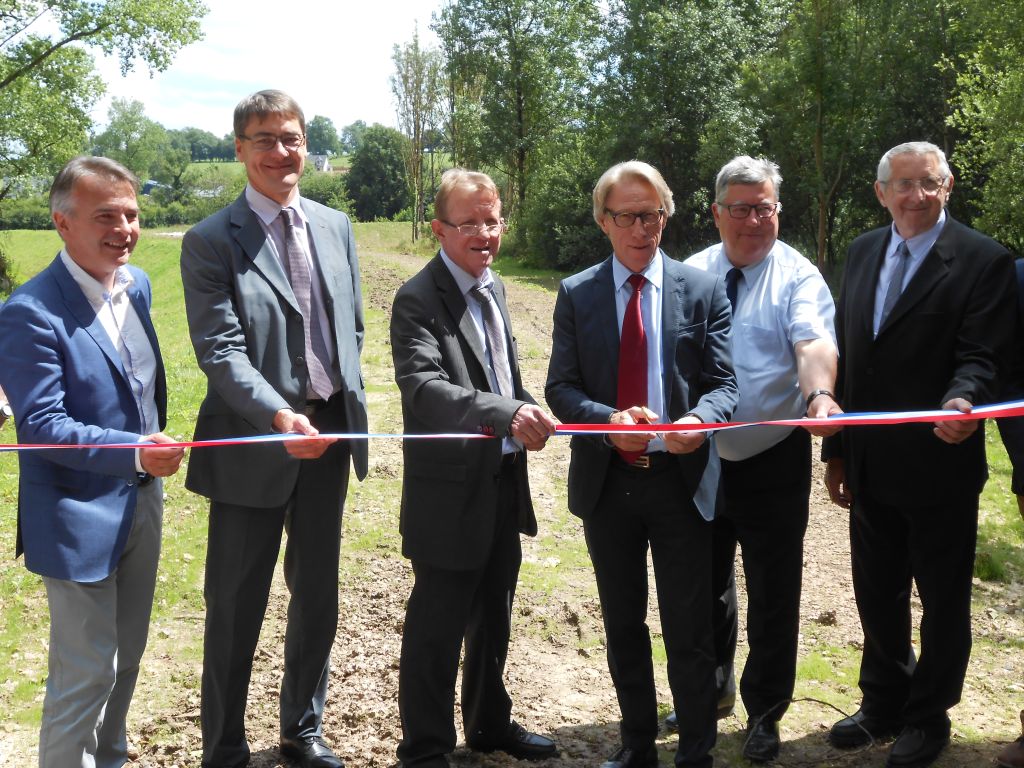 Dans le cadre du programme de mobilisation du champ d’expansion des crues de l’Aa, le premier champ d’inondation contrôlé situé sur la commune de Verchocq a été inauguré en présence de Jean-Luc BLONDEL, sous-préfet de Saint-Omer, Vincent VALIN, directeur des interventions à l’Agence de l’Eau Artois-Picardie, Christian DENIS, président du SmageAa et Josse NEMPONT, maire de Verchocq.