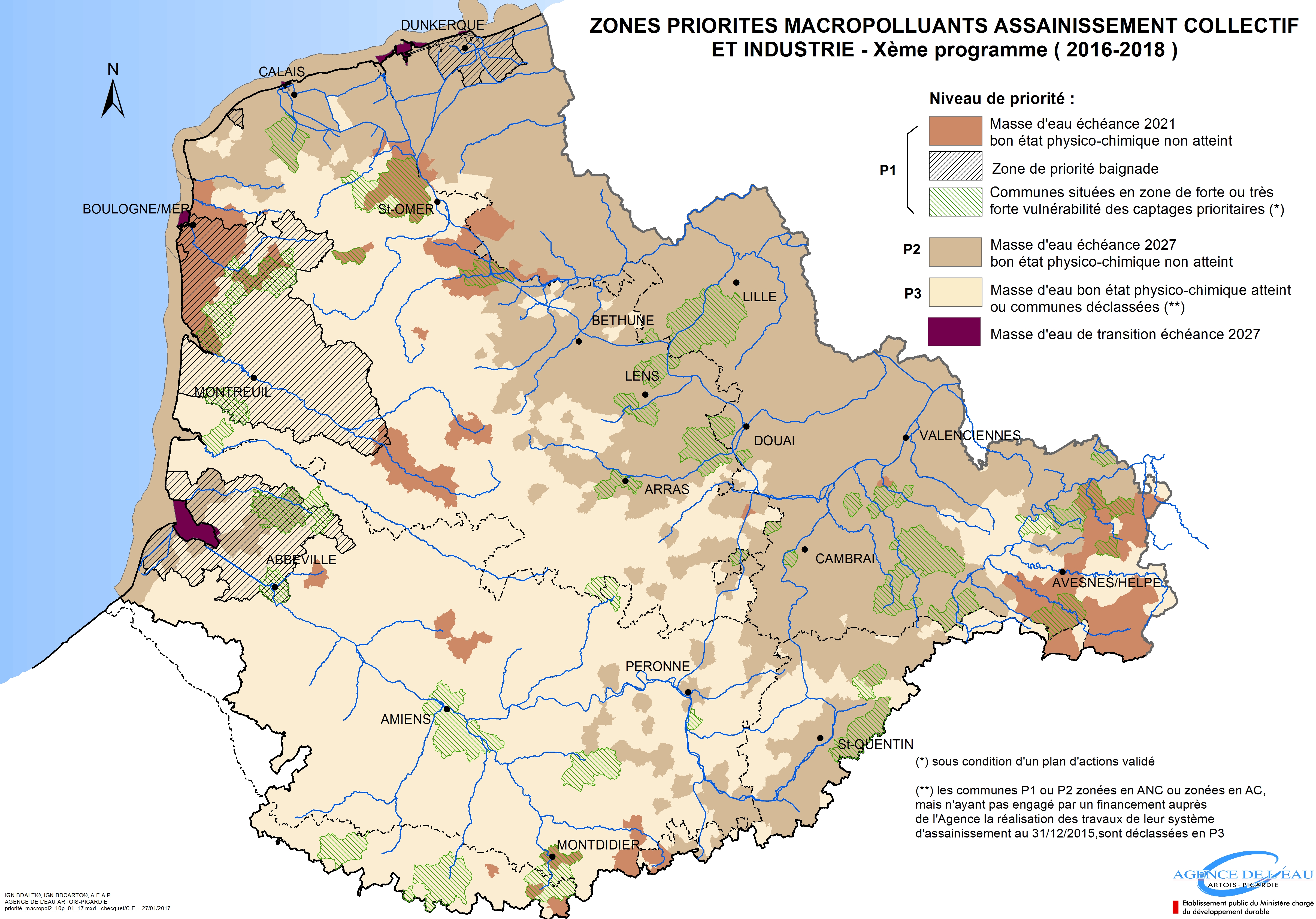10ème programme : Zones priorités macropolluants assainissement collectif et industrie (2016-2018)
