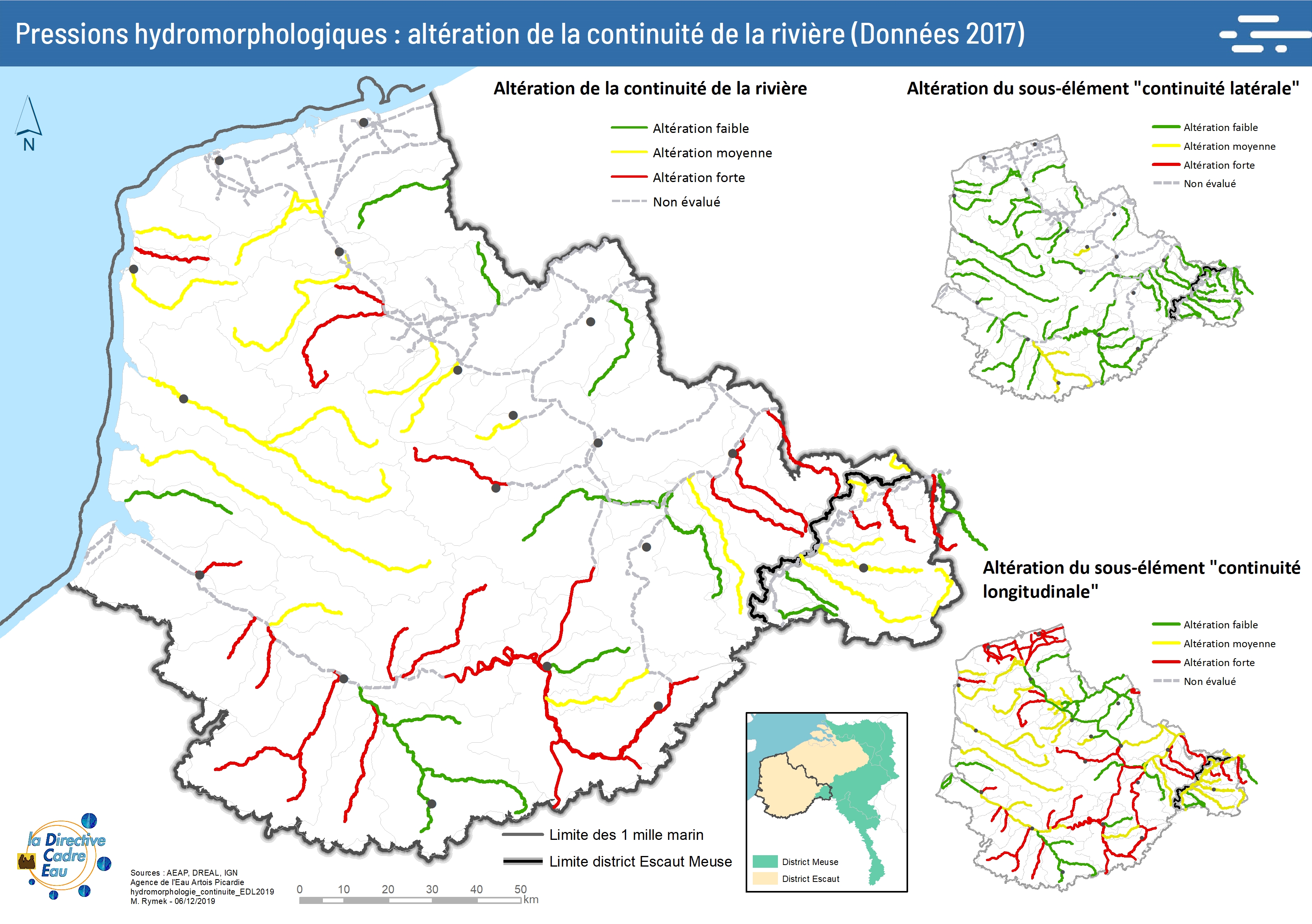 Pressions hydromorphologiques : altération de la continuité de la rivière (Données 2017)