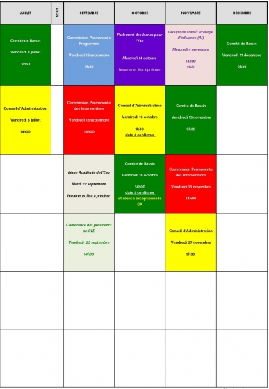 • Calendrier des Instances de Bassin