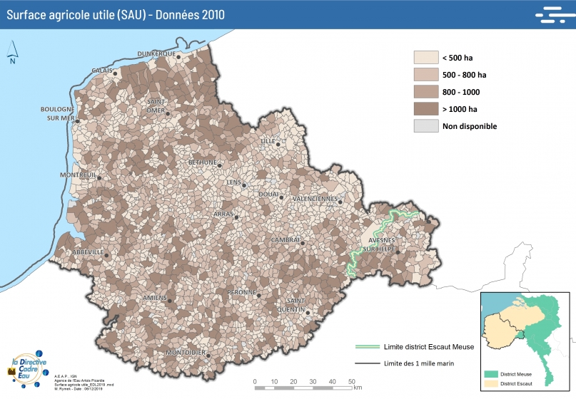 Cette carte issue de "l’état des lieux 2019" présente les surfaces agricoles utiles par commune en hectare.
