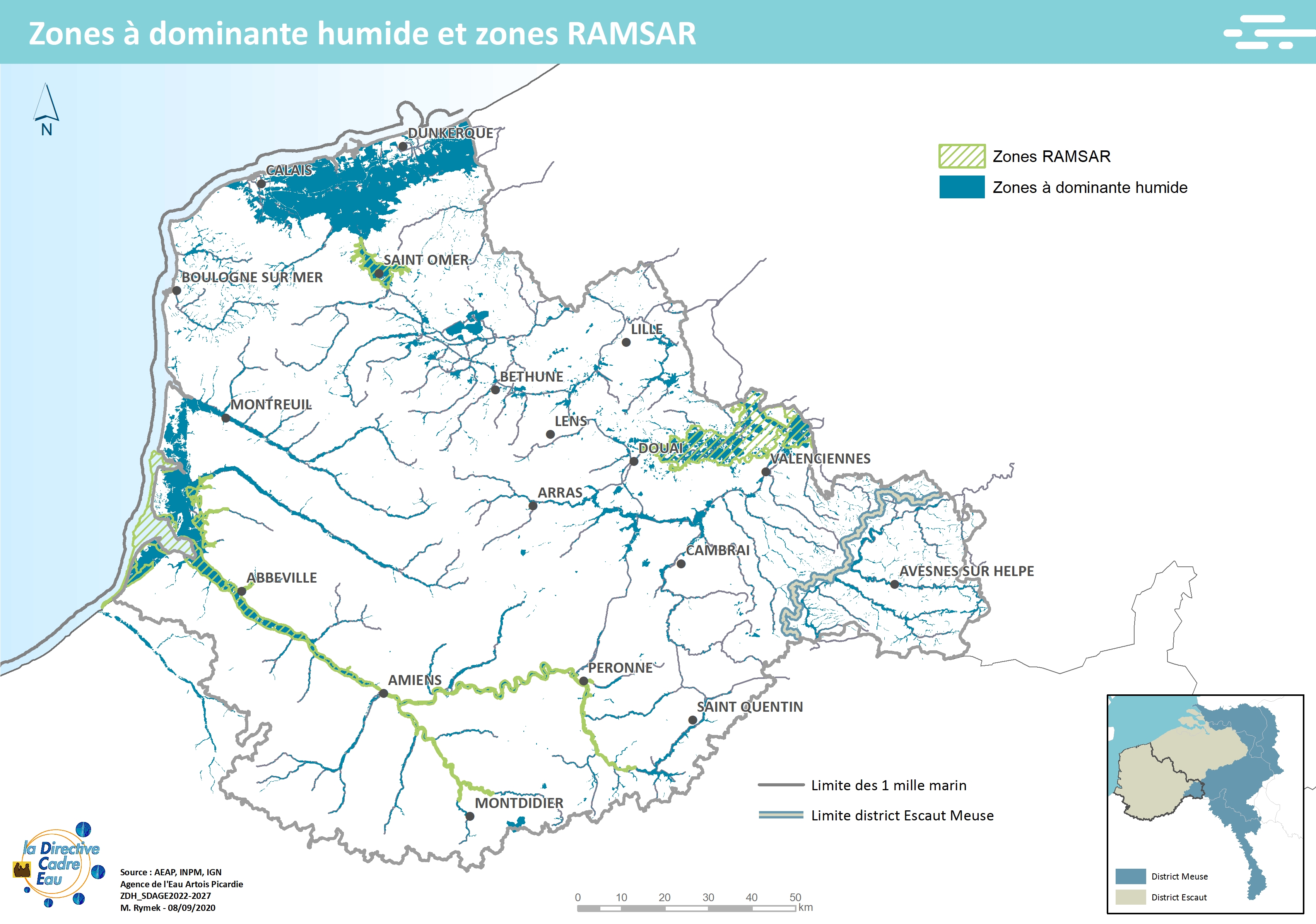 Cette carte issue du SDAGE 2022-2027 présente la synthèse du risque inondation sur le bassin Artois-Picardie (2019) : PAPI, TRI et SLGRI