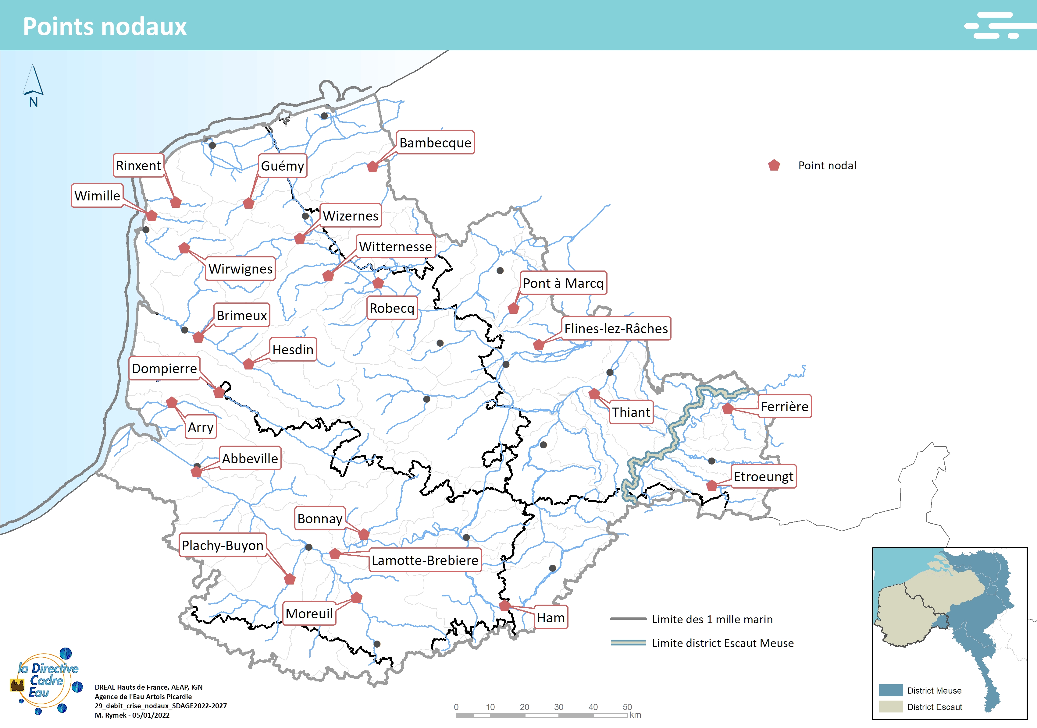 Cette carte issue du SDAGE 2022-2027 présente les points nodaux.