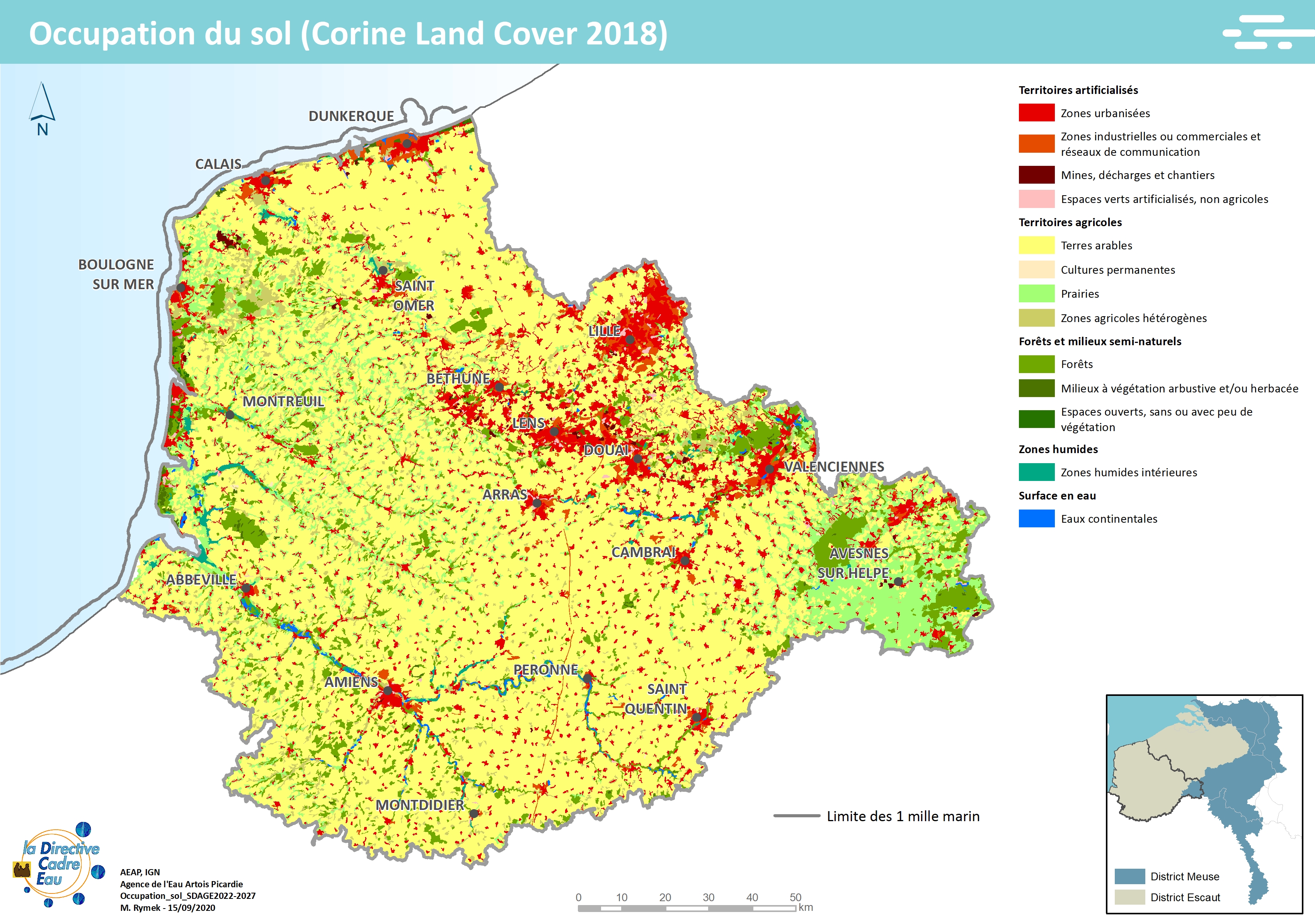 Cette carte issue du SDAGE 2022-2027 présente l'occupation du sol (Corine Land Cover 2018)