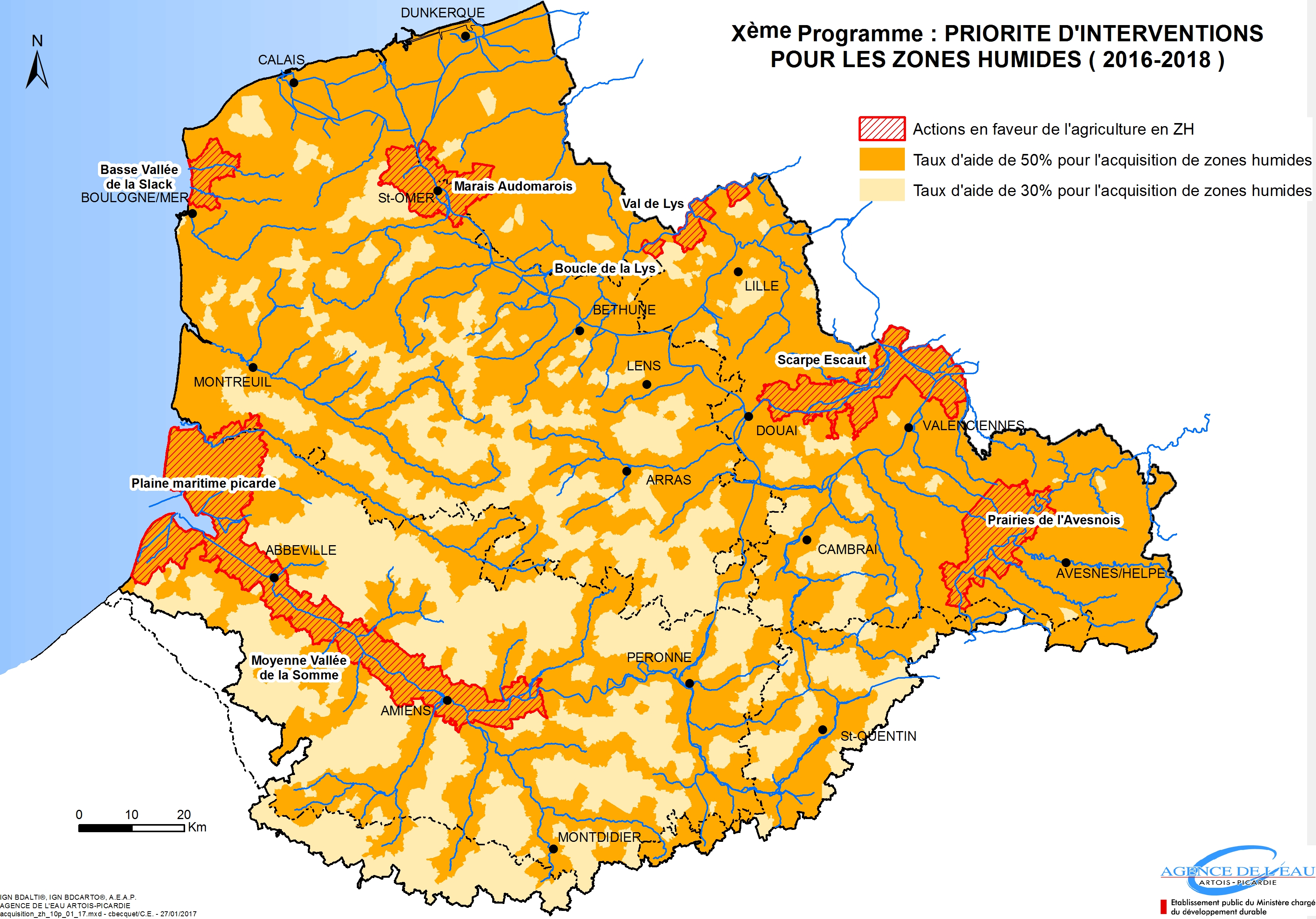 10ème programme : Zones de priorité d'interventions pour les zones humides (2016-2018)
