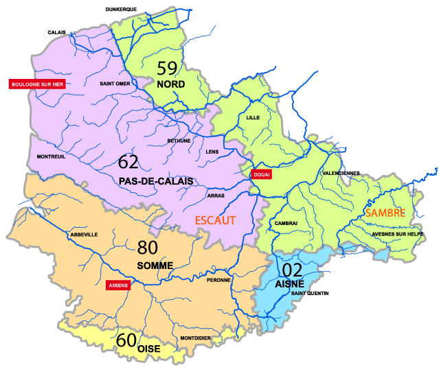 Les limites du bassin Artois-Picardie sont définies par la loi sur l'eau et les milieux aquatiques de 2006. Le découpage est basé sur les limites communales. Au 01/01/2019, le bassin comprend 2 466 communes réparties sur les départements Nord, Pas-de-Calais, Somme, Oise et Aisne.