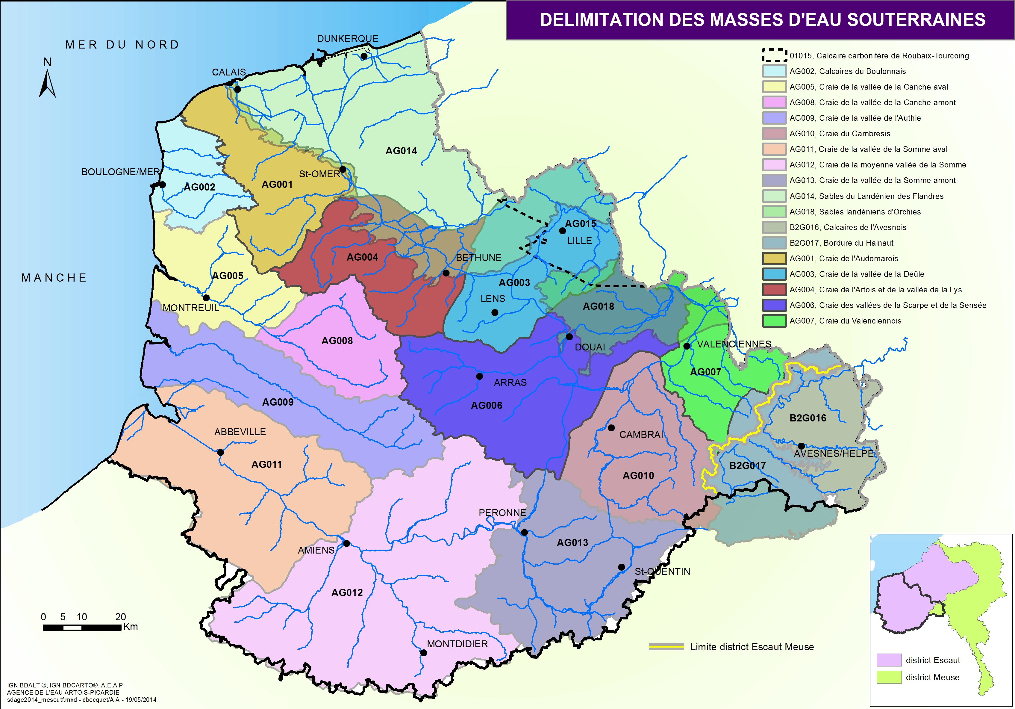 Le Schéma Directeur d'Aménagement et de Gestion des Eaux (SDAGE) fixe les objectifs d'atteinte du bon état des milieux aquatiques et les orientations pour atteindre ces objectifs. Cette carte issue du SDAGE 2016-2021 présente la délimitation des masses d'eau de surface côtières et de transition (ports et estuaires) définies dans le cadre de la Directive cadre sur l'eau.
