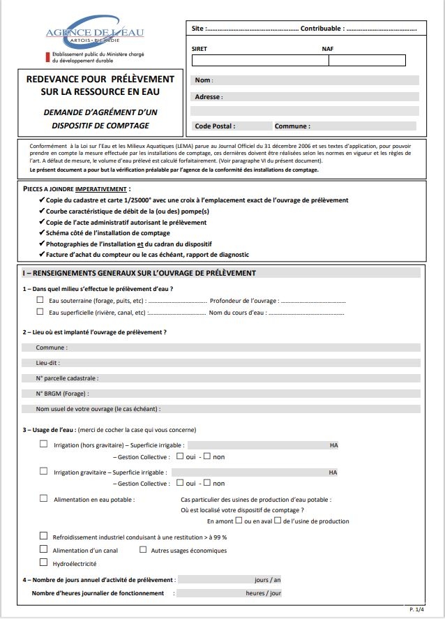 Formulaire de demande d'agrément d'un dispositif de comptage